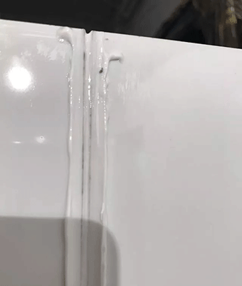 如上圖所示,用白色美縫劑來給淺顏色的瓷磚或白色瓷磚美縫的時候容易出現(xiàn)黑邊。白顏色的美縫劑是最容不得半點藏污納垢的,稍微一點的雜質便會表現(xiàn)的很明顯。這到底是什么原因造成的呢?應該怎樣避免和處理呢?